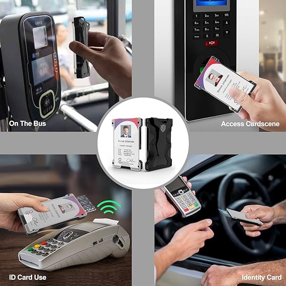 Nuestra billetera inteligente cuenta con tan solo un clip para sacar tus tarjetas de forma rápida y sencilla, cuenta con bloqueo RFID, que protege tus tarjetas de cualquier intento de clonación.