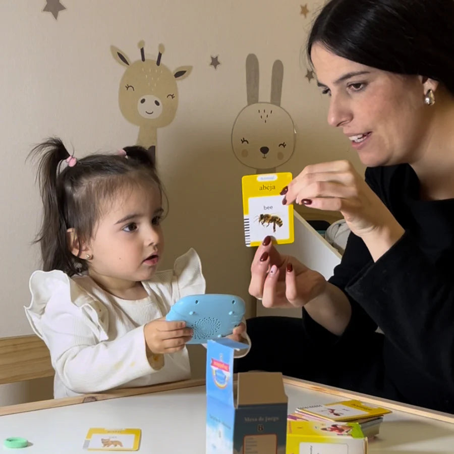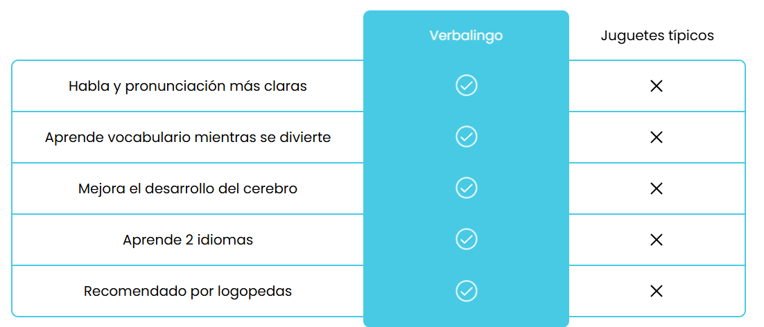 Verbalingo enseña más de 500 palabras en español e inglés, ayudando a niños de 1 a 5 años a hablar más y mejor, sin pantallas.