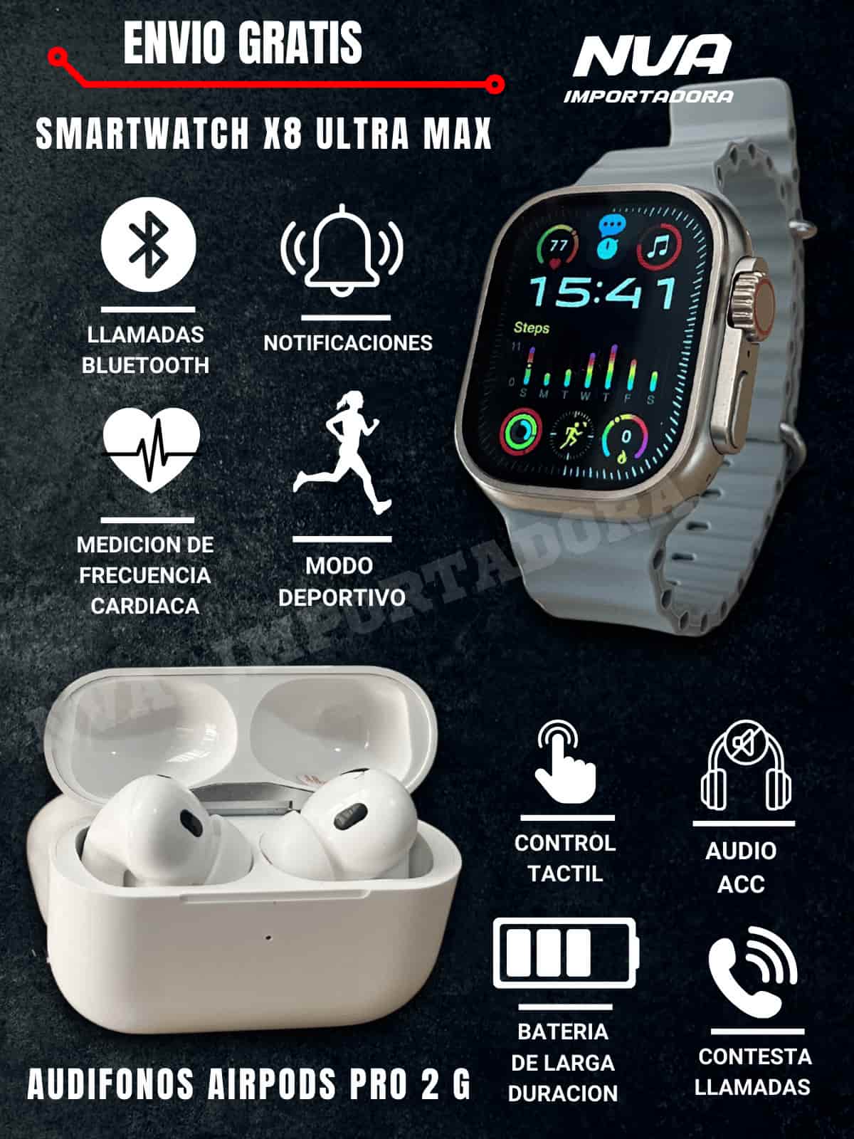 Reloj X8 Ultra Audifonos Power Bank 5 en 1