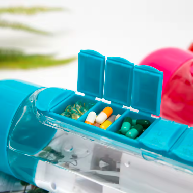 Pastillero extraíble con compartimentos espaciosos para organizar tus medicamentos y vitaminas de forma semanal.